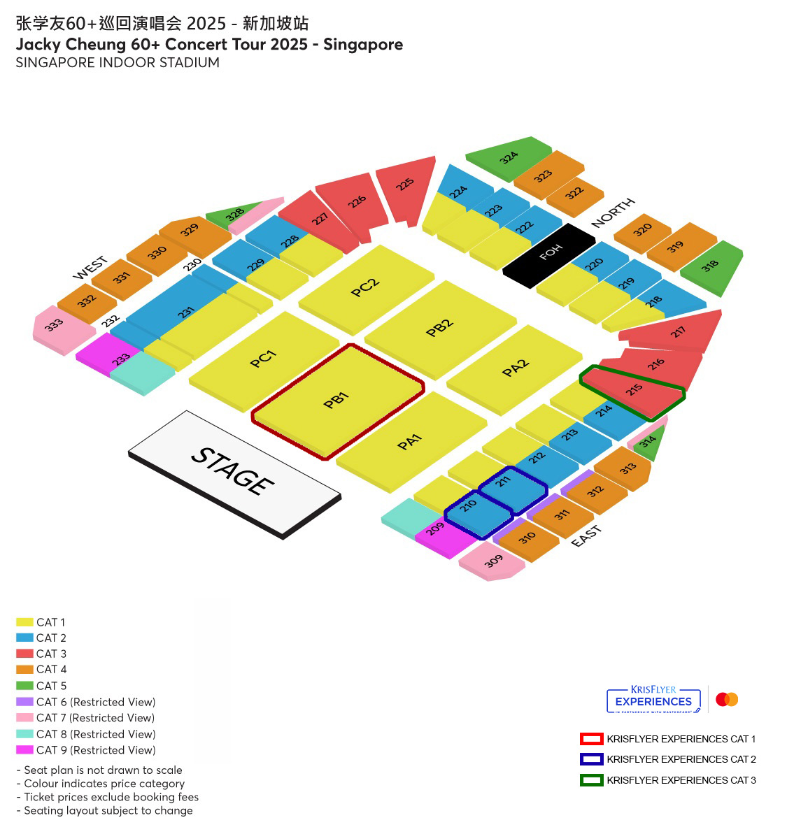 - Please note that seat selection within the respective Seat Category will not be available for tickets redeemed via KrisFlyer Experiences. Best available seats will be automatically assigned by Ticketmaster Singapore.